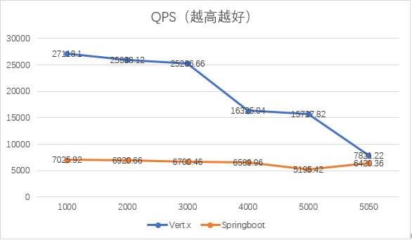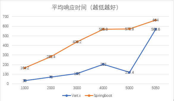所以推测,即便是对于CPU密集型应用,vert.x仍然具有较为明显的优势,尤其是对于高并发的场景下,Springboot将更早到达极限。